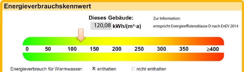 | Energieverbrauchskennwert | 120,08 kWh/(m²a) [inkl. Warmwasser] |
